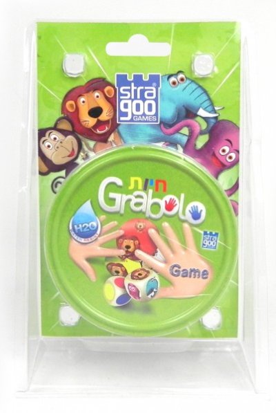 Dětská verze oblíbené postřehové hry GRABOLO. Dokaž, že máš u stolu nejlepší oči a nejrychlejší ruce. Kostky určí kombinaci barvy a obrázku, ty musíš rychle reagovat. Cílem hry je získat předepsaný počet karet. Plechová krabička obsahuje 36 plastových voděodolných karet, 1 barevnou a 1 obrázkovou kostku. Hra je určena pro 3 - 5 hráčů, trvá 8 - 10 minut, doporučený věk 3 - 99 let.