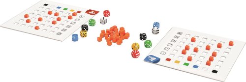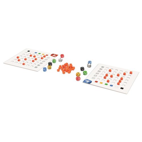 24 bodových kostek v 6 barvách 4 kartonové tabulky hráče 125 dřevěných kostiček pravidla hry