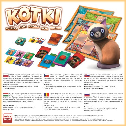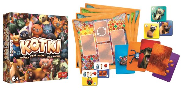 4 hrací desky - polštářky 32 karet koček 55 karet lákadel návod ke hře