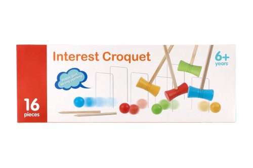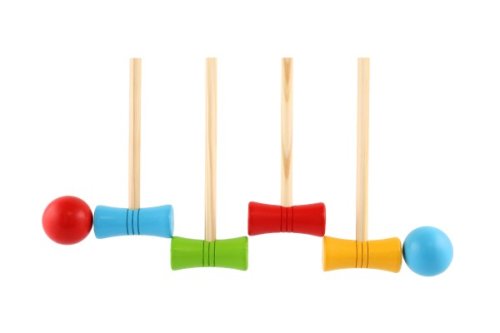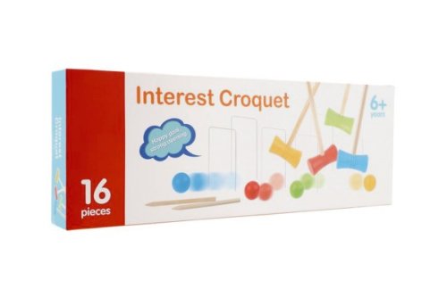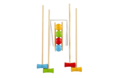 Rozmístěte branky dle návodu a postupně pomocí paliček dostaňte míček skrz všechny branky. Hráč s nejnižším počtem úderů vyhrává. Užijte si venku zábavné odpoledne! Kdo vyhraje? Rozměry balení 59 x 21 x 6 cm Vhodné pro děti od 6 let