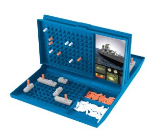 1× hrací deska s výklopnými poklopy 2 sady bitevních lodí 2 sady oranžových kolíčků (pro označení zásahů) 3 sady bílých kolíčků (pro označení nezasáhnutých polí) návod Vyhrává hráč, který jako první vyřadí všechny soupeřovy lodě. Hra nabízí spoustu taktické zábavy a napětí, kde každý tah může rozhodnout o vítězství.