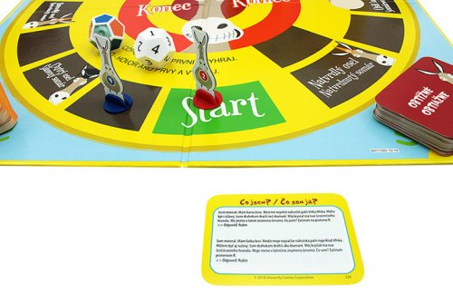 Rychle přemýšlejte, rychle odpovězte a vyhrajte. Kdo odpoví nejrychleji, může svou figurku posunout blíž k cíli. Nezáleží na tom, kdo je právě na řadě s házením kostky, která určí barvu kartiček s otázkami, záleží pouze na rychlosti a správnosti vaší odpovědi. Tato desková vědomostní hra je určena pro 2 až 6 hráčů ve věku od 12 let. Hráči musí na základě několika nepřímých nápověd uhodnout osobnost, zeměpisný název nebo věc. Poslední typ karet obsahuje směsici krátkých otázek s různými tématy. Obsahuje: 6 figurek, 1 hrací plochu, 461 karet, 2 kostky. Nevyžaduje baterie.