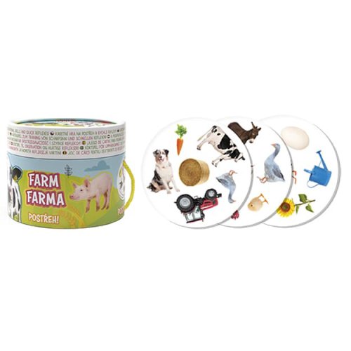 Karetní hra FARMA na postřeh a rychlé reflexy obsahuje 30 barevných kartiček ke hraní a omalovánku v tubě s oblíbeným pohádkovým motivem. Součástí balení jsou i pravidla, jak si hru zahrát.