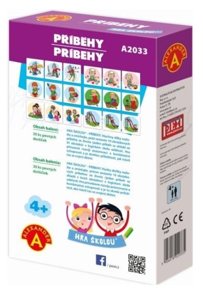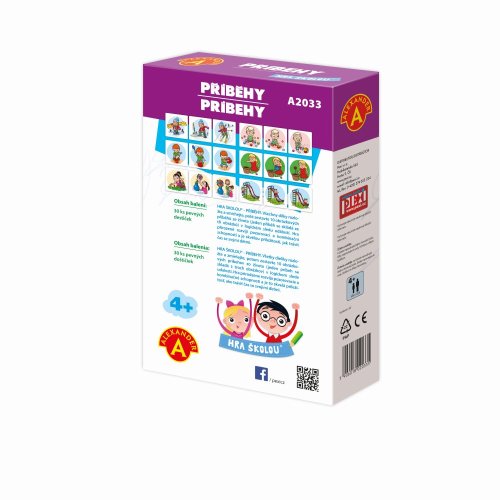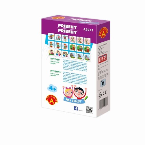 Ocenění Hračka roku 2018-3.místo. Naučná hra od 4 let, pomocí níž se děti učí poznat časové posloupnosti v příbězích, logicky uvažovat a zdokonalují schopnost mluvit a popisovat. Hra rozvíjí pozorovací schopnosti, trénuje postřeh a zdokonaluje řeč.Úkolem je složit destičky s příběhy, tak aby na sebe postupně navazovaly a vznikl celý logický příběh ve správné časové posloupnosti. Při skládání příběhů, si děti povídají s rodiči a popisují to, co vidí na obrázcích. To je vede k rozšiřování slovní zásoby a zlepšení vyjadřování a také, za pomoci rodičů ke zlepšení výslovnosti. BENEFITY:- učí logickou časovou posloupnost- rozvíjí slovní zásobu- zlepšuje vyjadřování- rozvíjí všímavost Obsah balení: 30 kusů obrázkových destiček s obrázky (z pevného kartonu), český a slovenský návod s příběhy