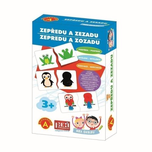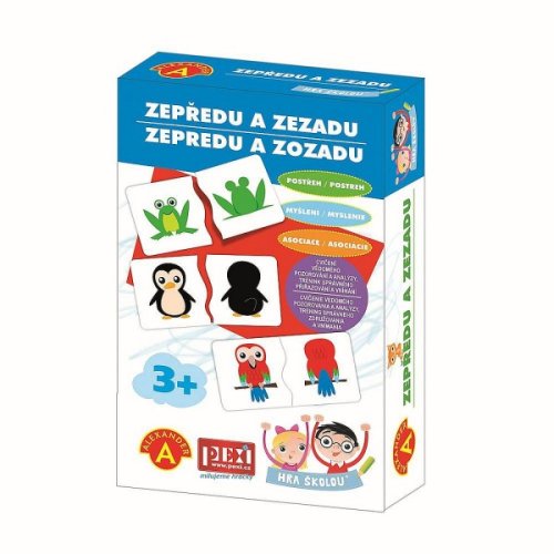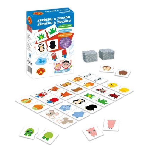 "Naučné hraní pro malé zvědavce od 3 do 6 let. Za pomocí zvířátek poznávají a upevňují rozlišování objektů z přední a zadní strany. Každý dílek z dvojice barevných obrázků má speciálně tvarované okraje, které dětem při skládání pomáhají ověřit si správnost nalezeného řešení. Série Hra školou® byla oceněná 3. místem HRAČKA ROKU 2018."