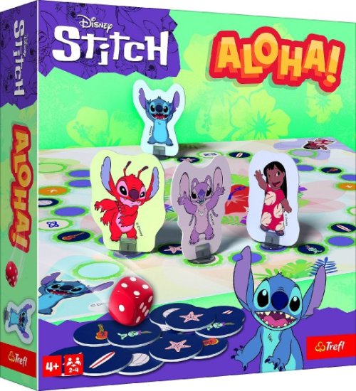 Zábavná dětská hra inspirovaná animovanou Disney postavičkou Stitch. Bavte se hledáním pěti různých věcí, ale pospěšte si. Zvítězí ten hráč, který jako první získá všech pět věcí a vrátí se na své startovní pole. Balení obsahuje: herní plán, 20 žetonů s předměty, 4 pěšáky, hrací kostku a návod. Vhodné pro děti od 4 let.