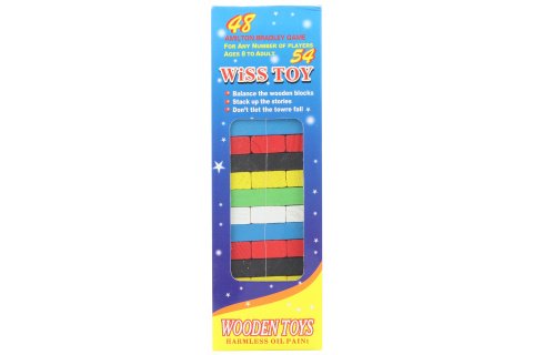 Dřevěná věž barevná. Rozměry balení cca 19,5 x 6,5 x 6,5 cm. Obsahuje 54 dřevěných kostek. Věk 3+