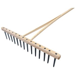 pevná dřevěná násada poskytuje pohodlný a stabilní úchop, zatímco lehký a odolný plastový hřeben zajišťuje snadné hrabání listí, trávy a zahradních nečistot