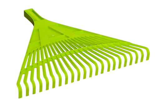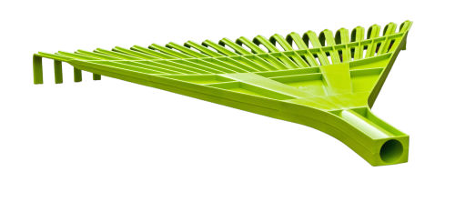 Lehké a praktické hrábě s širokou planžetovou hlavicí z odolného plastu, ideální pro rychlé a pohodlné shrabování listí, trávy a dalšího lehkého odpadu na zahradě.