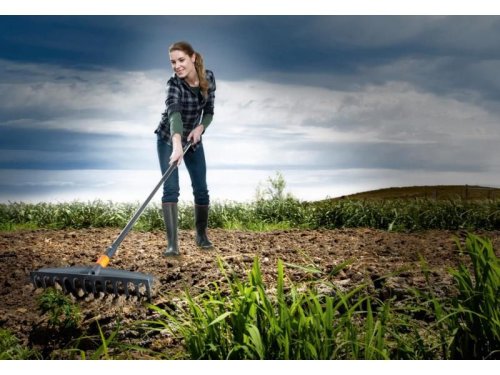 Univerzální hrábě jsou vhodné na hrabání trávy, plevele, mechu, na zpracování půdy a k přípravě záhonů pro setí. Mají 12 zubů z pevného kompozitního materiálu FiberComp. Systém QuikFit umožňuje spojení různého zahradního nářadí s jedinou násadou. Šířka: 410 mm, délka: 152 mm, hmotnost: 260 g.
