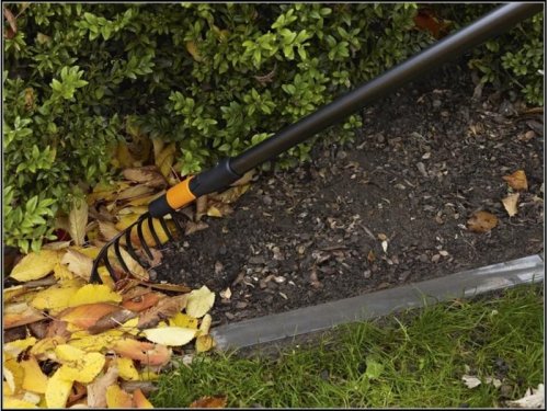 Úzké hrábě díky unikátnímu tvaru umožňují hrabat mezi rostlinami a keři bez jejich poškození. Jsou ideální na malé záhony. Mají 10 zubů z kalené bórové oceli. Systém QuikFit umožňuje spojení různého zahradního nářadí s jedinou násadou. Šířka: 245 mm, délka: 225 mm, hmotnost: 233 g.