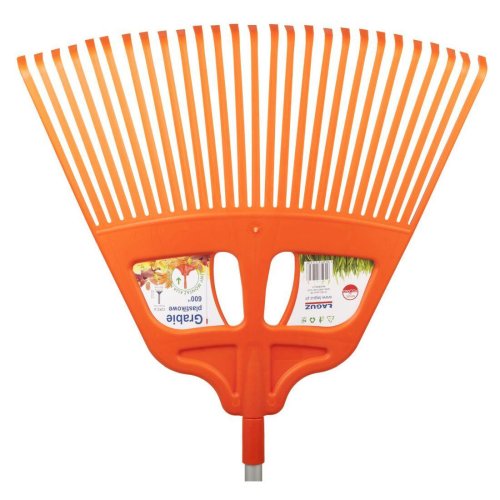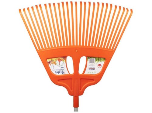 Plastové hrábě ve tvaru vějíře 600 mm. Vyrobeno ze 100% původního plastu. Ergonomicky navržené. Schopnost pracovat bez použití rukojeti. Montáž na KLIK hliníkovou tyč nebo tradiční 28 mm dřevěnou násadu.