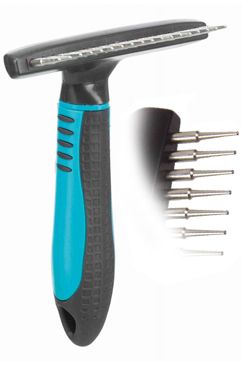 Hrablo s protiskluzovou rukojetí a zaoblenými zuby pro jemnou péči o srst. Protiskluzová rukojeť padne krásně do ruky a neprotáčí se a česání srsti, které by se mělo provádět minimálně 1 x týdně, Vám půjde lehce.