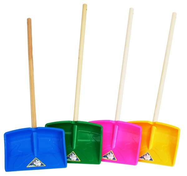 - dětské hrablo na sníh, barevný plast, dřevěná násada