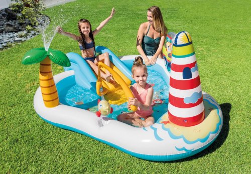 • Přibližná velikost 2,18 m x 1,88 m x 99 cm • Nafukovací podlážka • Vypouštěcí ventil • Součástí balení nafukovací prut, dvě ryby, 6 balónků • Vodní kapacita – výšky stěny bazénku – 13 cm-182 l • Možnost zapojení zahradní hadice • Maximální nosnost 81 kg • Opravná záplata součástí balení