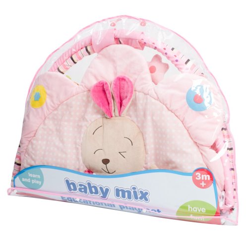 Krásná originální vzdělávací hrací deka Baby Mix s hrazdou rozvíjí dětskou představivost díky poznávaní barev a tvarů. Hrací deka v krásné zářivé barvě s motivem králíčka. Rozvíjí smysly hmatu, zraku i sluchu díky šustícím a pohyblivým částem. Příjemný a měkký materiál umožňuje pohodlné ležení na bříšku nebo zádech a umožňuje svobodu pohybu Vašeho dítěte. Miminko tak může získat bezpečný útulnější prostor a motivuje ke zvedání děťátka. Hračky lze z hrazdičky snadno sundat. Každé miminko si na dece najde svou oblíbenou hračku. Patří tu zrcadlo, suštící části, plyšová hračka s pískátkem, plyšová hračka s rolničkou. Díky jednoduché konstrukci a dodávané tašce lze deku lehce přenášet. Hračky lze odepnout a používat samostatně. Pořiďte Vašemu miminku pohádkové místo pro hraní i odpočinek. Nadýchaná jemňoučká a semišková hrací deka poskytne miminku dokonalý komfort. Pokud deku zrovna nepoužíváte, snadno ji složíte a uchováte tak před prachem nebo případným poškozením. Deku rozložíte zpět během minutky. Vhodné pro děti od 3 měsíců. Rozměry: cca 87 cm. Výška: cca 41 cm.