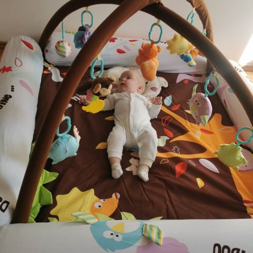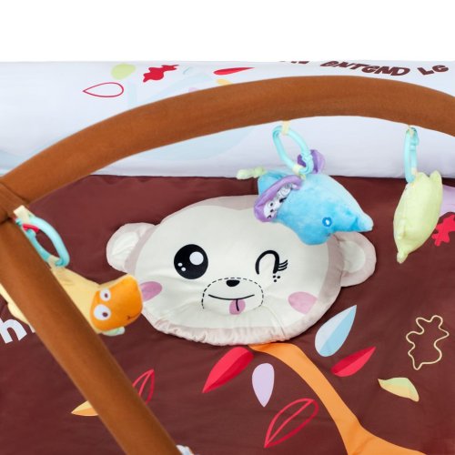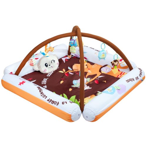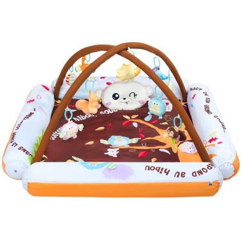 Krásná originální vzdělávací hrací deka s melodií a hrazdou PlayTo rozvíjí dětskou představivost díky poznávaní barev a tvarů. Hrací deka v krásných zářivých barvách s motivy zvířátek se skládá z měkké podložky s polštářkem, dvou odnímatelných hrazdiček a čtyř nafukovacích mantinelů, které vytváří vašemu děťátku chráněný a útulný prostor. Nalezneme zde různě suštící části, plyšové hračky s pískátkem, rolničkou nebo kousátkem. V ptáčkovi je ukrytý hrací modul, po jehož stlačení ptáček vydává příjemné melodie. Tyto hračky zlepšují pozorovací schopnosti a koordinaci pohybů, rozvíjí smysly hmatu, zraku a sluchu. Všechny hračky lze jednoduše sundat a používat samostatně v kočárku nebo postýlce. Lze ji použít doma i venku. Díky jednoduché konstrukci a dodávané tašce lze deku lehce přenášet. Pořiďte Vašemu miminku pohádkové místo pro hraní i odpočinek. Pro PlayTo je důležitá vaše spokojenost a pohodlí vašeho miminka, a proto nabízíme tuto roztomilou, pohodlnou, krásně barevnou a měkoučkou hrací deku, která poskytne každému děťátku dokonalý komfort. Pokud deku zrovna nepoužíváte, snadno ji složíte a uchováte tak před prachem nebo případným poškozením.<BR>Vhodné pro děti od 3 měsíců<BR> Vnější rozměry 123x123 cm<BR> Vnitřní rozměry 95x95 cm<BR>Výška hrazdičky od země cca 60 cm<BR>Výška mantinelů cca 20 cm<BR> Váha 2,3 Kg<BR>