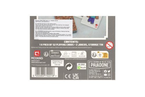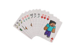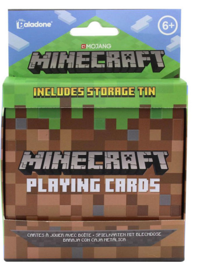 Karty Minecraft potěší všechny příznivce stejnojmenných videoher. S jejich pomocí si budete moci zahrát karty, které jsou doplněné o oblíbené postavy kostičkové videohry. Balíček obsahuje 54 žolíkových karet, které jsou uložené v praktické plechové krabičce. Díky ní si je můžete vzít na výlet či dovolenou a nepoztrácí se vám. Karty Minecraft představují skvělou zábavu pro malé i velké.Oficiálně licencovaný produkt.