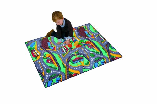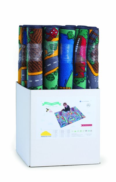Hrací koberec silnice, domy, příroda střední. Barevný koberec je spodní strany opatřen antiskluzovou vrstvou. Rozměr koberce je 95×133 cm. Vyrobeno v EU.