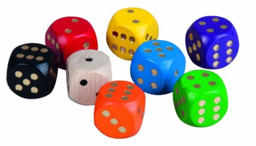 Dřevěné kostky různých barev o velikosti 16 x 16 x 16 mm slouží nejen ke klasické stolní hře. Pouze celá dóza (150 ks). Rozměry balení 10 x 14 x 10 cm. Vhodné pro děti od 3 let.