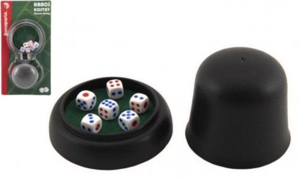 Hrací kostky s kalíškem. Oblíbená a jednoduchá hra s kostkami, kterou si vaše děti zamilují. Navíc se u toho naučí základní počty. Vhodné také na cesty. Vhodné pro děti od 3 let.