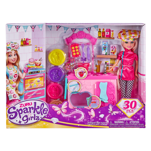 Tato sada panenka Sparkle Girlz s tématikou pečení je ideální pro všechny malé cukrářky, pekařky a milovníky kuchařských dobrodružství! Součástí sady je panenka Sparkle Girlz, která je připravená na pečení a zábavu v kuchyni, a 30 doplňků, které zahrnují vše potřebné pro přípravu nejen sladkých pochoutek – od formiček na pečení, válečku a dalších pomůcek až po různé dekorace. Děti si mohou vytvořit vlastní recepty, hrát si na malou pekařku a užívat si hodiny kreativní zábavy.