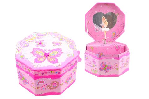 Hrací skříňka šperkovnice truhla. Uvnitř špekovnice je zrcátko a baletka, která po natažení klíčku tančí a hraje. Velikost cca 13 x 13 x 7 cm. Baleno v igelitovém sáčku. Výrobek není hračka.
