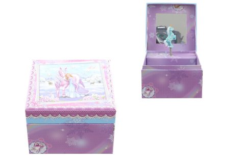 Hrací skříňka šperkovnice truhla. Uvnitř špekovnice je zrcátko a jednorožec, který po natažení klíčku tančí a hraje. Velikost cca 11 x 11 x 8 cm. Baleno v igelitovém sáčku. Výrobek není hračka.