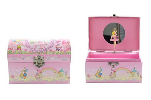 Hrací skříňka šperkovnice truhla. Uvnitř špekovnice je zrcátko a baletka, která po natažení klíčku tančí a hraje. Velikost cca 16 x 10 x 10,5 cm. Baleno v igelitovém sáčku. Výrobek není hračka.