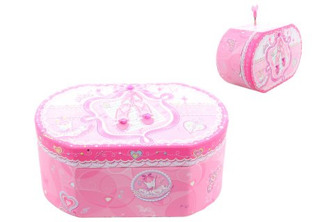 Hrací skříňka šperkovnice truhla. Uvnitř špekovnice je zrcátko a baletka, která po natažení klíčku tančí a hraje. Velikost cca 17 x 11 x 8 cm. Baleno v igelitovém sáčku. Výrobek není hračka.