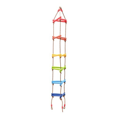 Pestrobarevný plastový žebřík o třech stranách nabízí provedení odolné povětrnostním vlivům. Je vybavený kovovým okem k zavěšení. Hravě jím zpestříte dětské hřiště, nebo domeček na stromě.