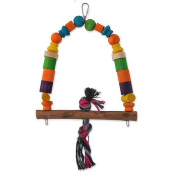 Hračka Bird Jewel houpačka dřevená s uzlem barevná 32cm