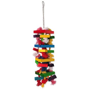 Hračka Bird Jewel závěsná s provazy a dřívky barevná 54cm