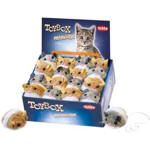 Balení hraček pro kočky, které obsahuje plyšovou myšku, která po natažení vibruje. Balení obsahuje 24 ks. Rozměry: 6,5 cm