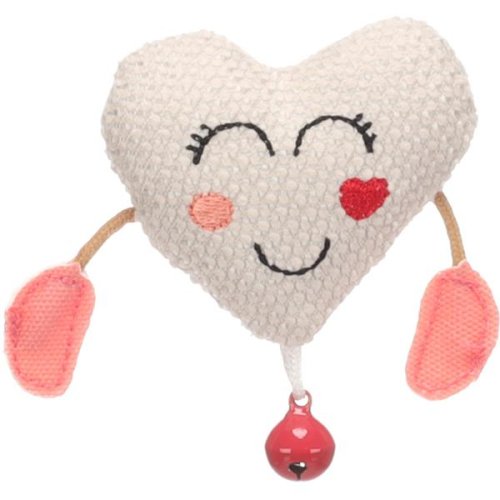 Hračka pro kočky ve tvaru srdce je vyrobená z měkkého, na dotek příjemného materiálu s jemně texturovaným povrchem. Srdce je naplněné catnipem (šantou kočičí), bylinou, jejíž vůně většinu koček přitahuje a tím zvyšuje jejich zájem o hračku. Pro ještě větší vzrušení ze hry je ke hračce připevněná rolnička. Rozměry (cca): 9 × 2,5 × 8 cm Materiál: polyester, kov Barva: béžová, růžová Upozornění: Není určeno dětem. Kočky mohou reagovat na vůni šanty kočičí rozdílně. Na kočku při hře dohlížejte a hračku jí nechávejte k dispozici pouze na omezenou dobu. Hračku pravidelně kontrolujte a v případě poškození přestaňte používat.