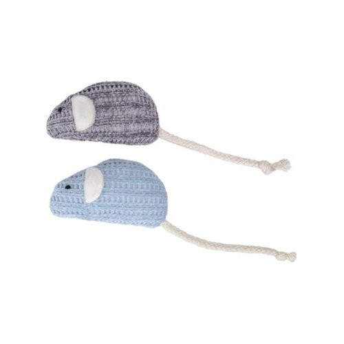Dvě hračky ve tvaru myšek jsou vyrobené z měkkého úpletu, mají plyšovou výplň a pro ještě větší vzrušení ze hry dlouhý ocásek z provázku. Použité materiály stimulují přirozené lovecké instinkty kočky. Hračky jsou vhodné pro samostatnou i společnou, interaktivní hru. Rozměry (cca): 4,5 × 8 cm Materiál: měkký úplet výplň – plyš Barva: modrá, šedá Upozornění: Hračka není určena dětem. K použití pouze pod dohledem. Hračku pravidelně kontrolujte a v případě poškození přestaňte používat.