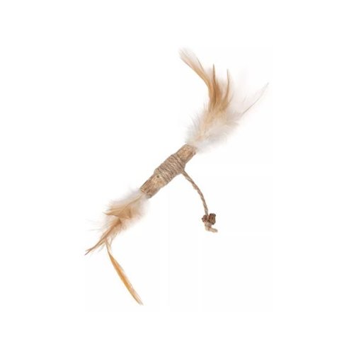 Hračka ve tvaru válečku je vyrobená ze dřeva a provázku a na obou koncích ozdobená peříčky. Použité materiály podporují aktivní hru a stimulují přirozené lovecké instinkty kočky. Jejich okusování navíc pomáhá odstraňovat zubní plak a podporuje tak zdraví ústní dutiny. Hračka je vhodná pro kočky všech věkových kategorií. Délka (cca): 6 cm Materiál: dřevo, peří Upozornění: Hračka není určena dětem. Na šantu kočičí mohou kočky reagovat rozdílně. K použití pouze pod dohledem. Hračku pravidelně kontrolujte a v případě poškození přestaňte používat.