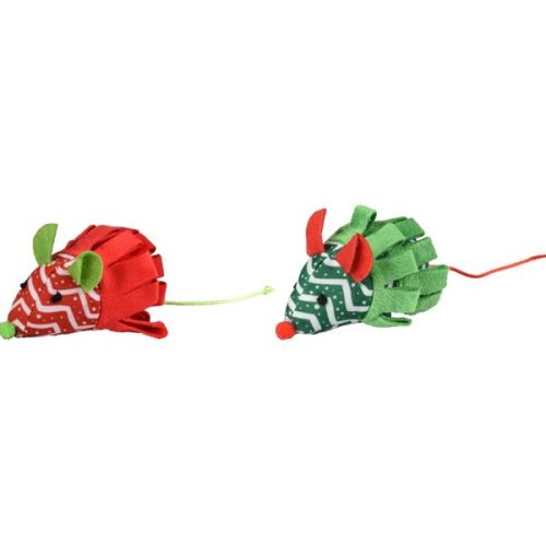 Plyšová hračka pro kočky ve tvaru myši je vyrobená z plyše a tkaniny s vánočním vzorem. Uvnitř hračky je catnip (šanta kočičí), jehož vůně povzbuzuje ke hře až 70 % koček. Pro ještě větší zábavu má myš dlouhý ocásek z provázku. Hračku je možné prát na 30 °C. Délka (cca): 20 cm Materiál: polyester Varianty: zelená s červenými oušky nebo červená se zelenými oušky – zasíláme dle aktuální skladové zásoby. Přejete-li si konkrétní variantu, napište ji do poznámky k objednávce. Upozornění: Hračka není určena dětem. Kočky mohou reagovat na vůni šanty kočičí rozdílně. Na kočku při hře dohlížejte a hračku jí nechávejte k dispozici pouze na omezenou dobu. Hračku pravidelně kontrolujte a v případě poškození přestaňte používat.