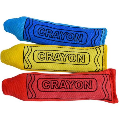 hračky pro kočky ve tvaru barevných pastelek naplněné pouze 100 % ekologicky vypěstovanou americkou šantou kočičí vyrobeno z odolné bavlny barveno pouze přírodními barvivy na rostlinné a sójové bázi baleno po třech kusech
