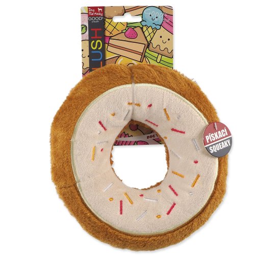 Hračka z jemného plyše, který je příjemný na dotek a dobře padne do psí tlamy. Při stlačení hračka píská. Lákavý donut, který bez obav můžete svému psovi dopřát.
