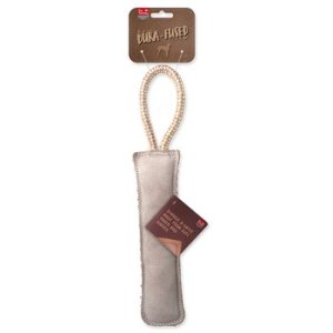 Tato hračka je navíc obzvláště odolná. Je ušitá ze dvou vrstev - spodní vrstva je vyrobena z juty a vrchní z kůže. Dvojitě prošité švy pevnou nití zaručují, že hračka vydrží i ty nejdivočejší hry.
