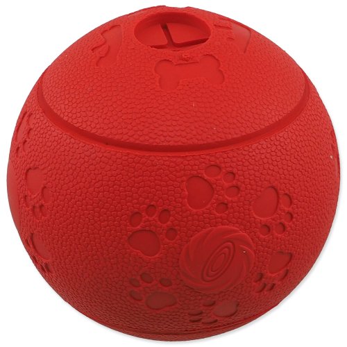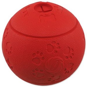Interaktivní hračka pro psy. Do otvoru lze vložit pamlsky, které se při pohybu s míčkem vysypávají ven a psa to motivuje k další hře.