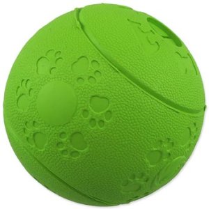 Interaktivní hračka pro psy. Do otvoru lze vložit pamlsky, které se při pohybu s míčkem vysypávají ven a psa to motivuje k další hře.