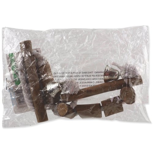 Závěsná dřevěná houpačka s lanem vhodná pro střední exotické ptactvo.