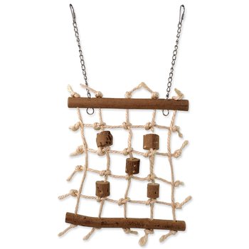 Závěsná čtvercová šplhací stěna s dřívky vhodná pro malé a střední exotické ptactvo. Z přírodních materiálů.