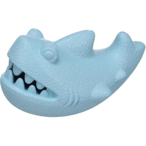 Gumová hračka pro psy ve tvaru žraloka je vhodná pro kousání a plnění pamlsky nebo granulemi. Podporuje aktivní hru a zabaví psa na delší dobu. Rozměry (cca): 7,3 × 12,8 × 7,2 cm Materiál: guma Barva: modrá Upozornění: Hračka není určena dětem. K použití pouze pod dohledem. Hračku pravidelně kontrolujte a v případě poškození přestaňte používat.