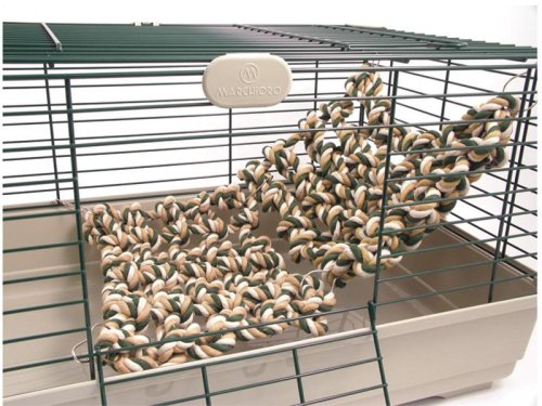 Splétané bavlněné lana jsou skvělou hračkou pro lezení a šplhání pro potkany a fretky. Snadné upevnění na klec pomocí kovových úchytů. Možnost zavěšení v různých polohách – od stropu ke stěně, mezi stěnami, mezi klecemi, atd. Zavěšením na výšku vytvoříte v kleci lezeckou stěnu, zavěšením na šířku bude síť sloužit jako most nebo hamak. Bavlněnou síť lze též zavěsit do klece či voliéry, papoušci po ní budou určitě rádi šplhat. Pro ještě větší fyzickou aktivitu a zábavu lze síť zkombinovat s lanovým mostem Boredom Breaker Rope Bridge. Lanová síť je k dispozici v zeleno/bílo/béžové, fialové a fialově/šedé barvě. Rozměry: 33 x 23 cm