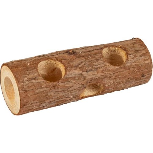 Tunel z přírodního dřeva s kůrou pro hlodání, zábavu a předcházení nudy králíků a hlodavců. Pro drobné savce poslouží i jako prolézačka a úkryt. Tunel můžete použít i jako krmítko a naplnit ho senem, bylinkami, zeleninou nebo dalšími zdravými pochoutkami. Dřevěné hračky podporují přirozený hlodavý instinkt. Hlodání je důležité pro dostatečné obrušování stále rostoucích zubů a udržení jejich růstu pod kontrolou. Bezpečný druh jehličnatého dřeva s přírodním lepidlem. Rozměry: 3 × 19,5 cm