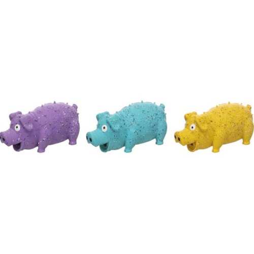 Hračka ve tvaru prasátka je vyrobená z latexu a pro ještě větší potěšení ze hry je opatřena pískátkem. Na povrchu hračky jsou drobné výstupky, které napomáhají přirozenému čištění zubů a masírují dásně a jazyk. Velikost: S Rozměry (cca): 6,8 × 15 × 7 cm Materiál: latex Barva: fialová, modrá, žlutá – zasíláme dle aktuální skladové zásoby. Přejete-li si konkrétní barvu, napište ji do poznámky k objednávce. Upozornění: Hračka není určena dětem. K použití pouze pod dohledem. Hračku pravidelně kontrolujte a v případě poškození přestaňte používat.