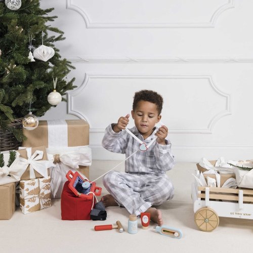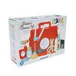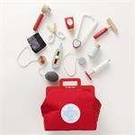 Lékařská taška se vyrábí z červené bavlněné látky. Díky uchu a pevné dřevěné konstrukci si ji váš potomek přenese na jakékoliv místo v domácnosti nebo si ji přibalí na cestu k babičce a dědečkovi. Na stetoskopu a tlakoměru se nacházejí bavlněné šňůrky. Všechny nástroje jsou z pevného a vysoce kvalitního FSC dřeva, které se získává z udržitelných a obnovitelných zdrojů. Malování na lékařských pomůckách je vytvořené ekologickými barvami na bázi vody, které nejsou toxické a neodlupují se. Zároveň prošly nejpřísnějšími bezpečnostními standardy.